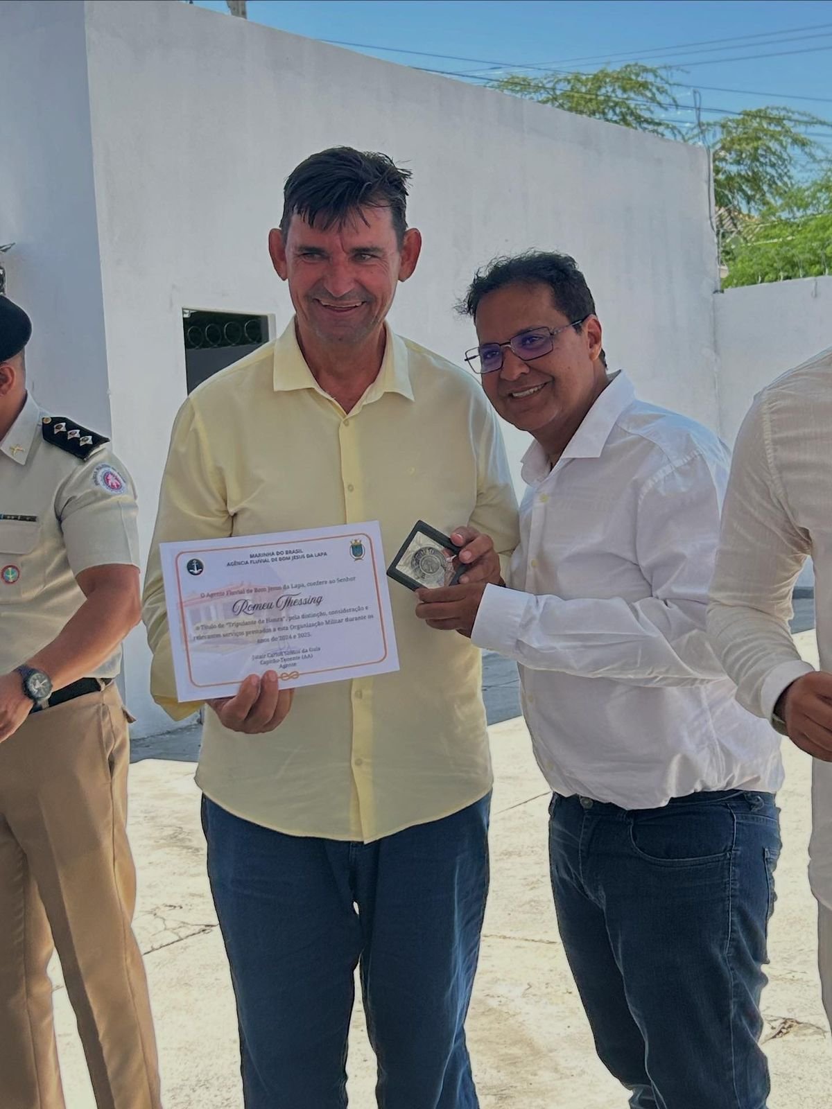 Nesta manhã de sexta-feira, tive a honra e a imensa alegria de ser agraciado com o título de Tripulante de Honra da Agência Fluvial de Bom Jesus da Lapa. A cerimônia contou com a presença ilustre do excelentíssimo senhor prefeito Eures Ribeiro, acompanhado de sua dedicada equipe de governo, além de representantes da Marinha do Brasil, secretários municipais, autoridades locais e amigos que gentilmente prestigiaram esse momento tão significativo.